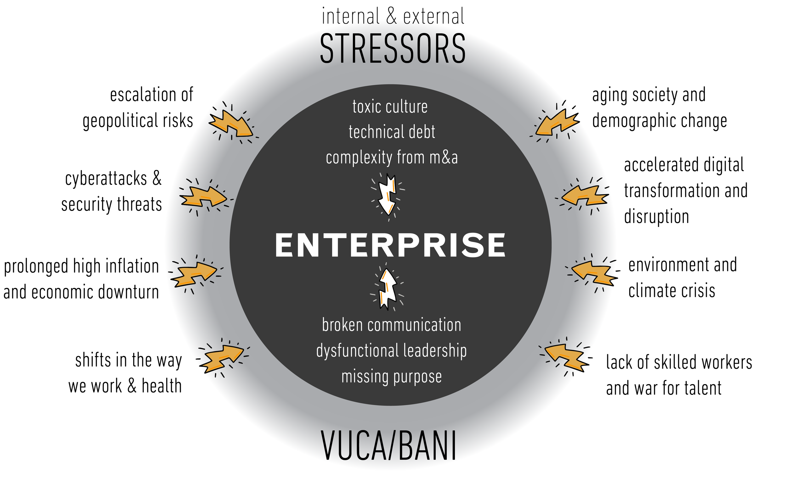 In 2023, enterprises worldwide are grappling with a multitude of challenges and stressors as they navigate an increasingly complex business landscape. Chief among these concerns are the ongoing impact of the COVID-19 pandemic, the rapid acceleration of digital transformation, and the growing importance of environmental, social, and governance criteria. Additionally, organizations face the escalating threat of cyberattacks, mounting supply chain disruptions, and the struggle to attract and retain top talent in a competitive global market.